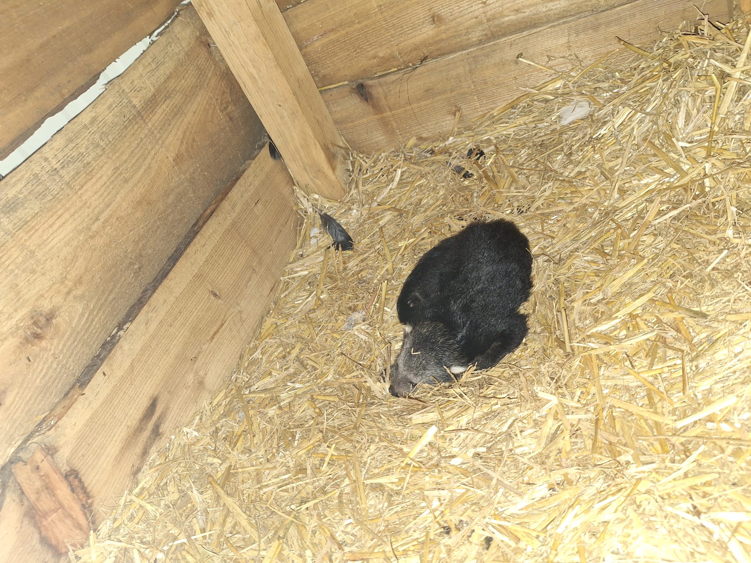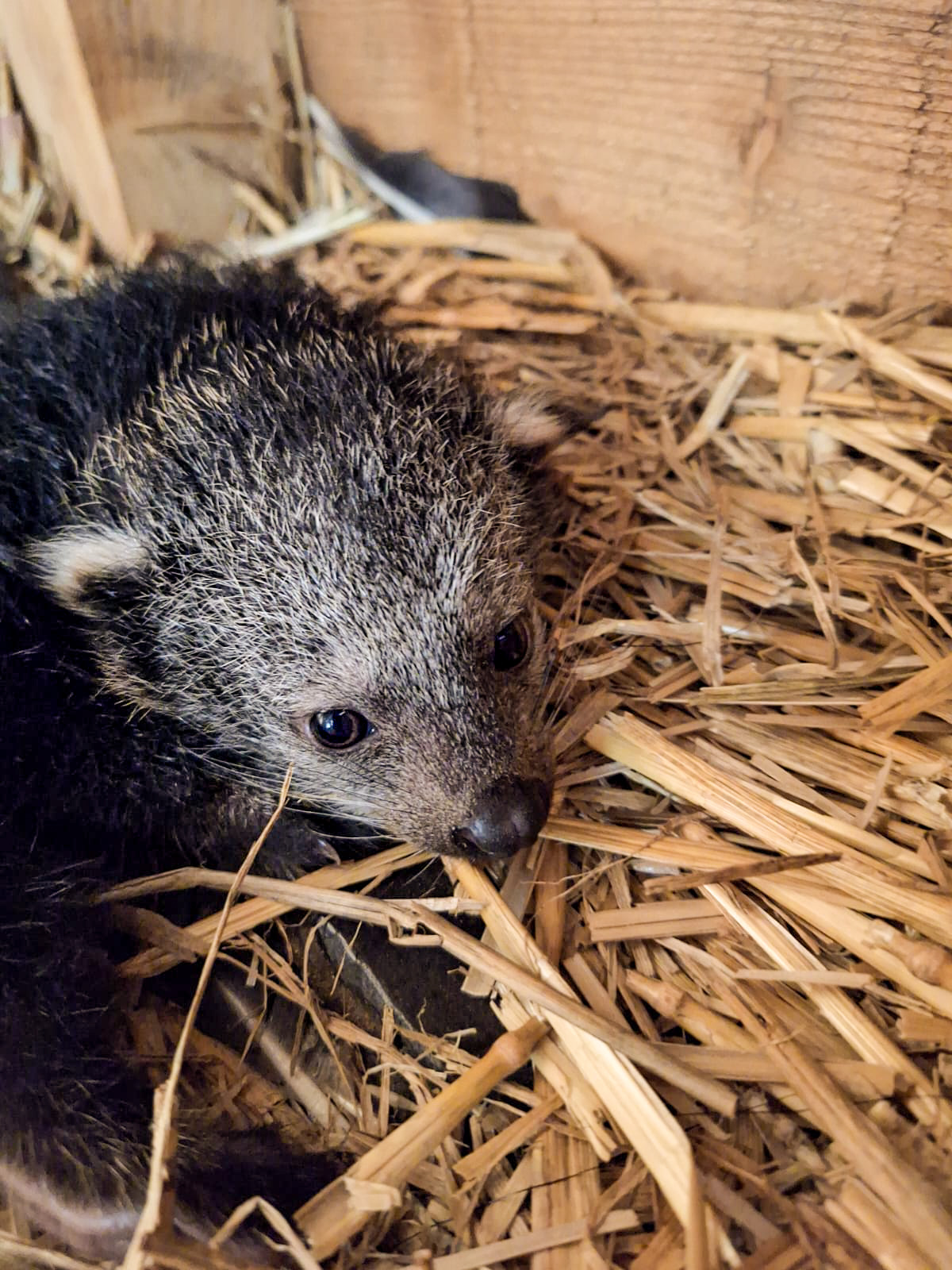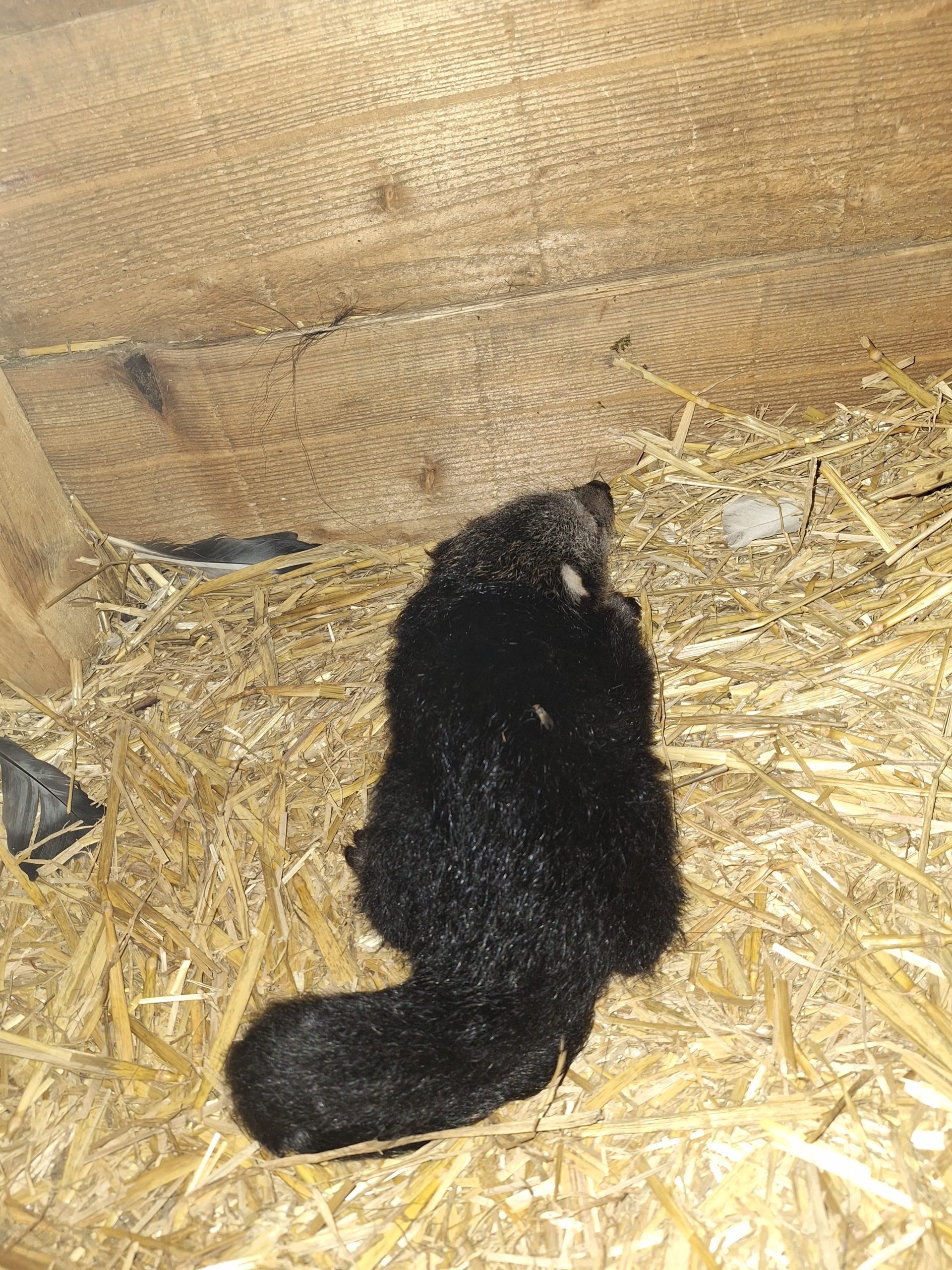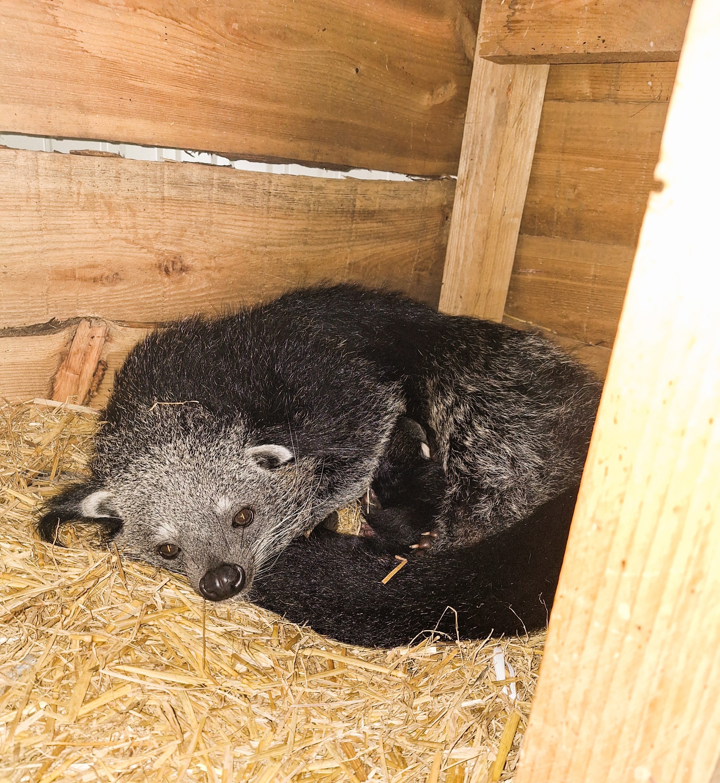 Beter weer komt met een baby binturong (of beermarter) hier in Pakawi Park! 5 Augustus wou mama Mayumi niet uit de nestbak komen, al snel werd duidelijk waarom! Al was het niet onverwacht want ze was wat aan de dikke kant de laatste tijd.
