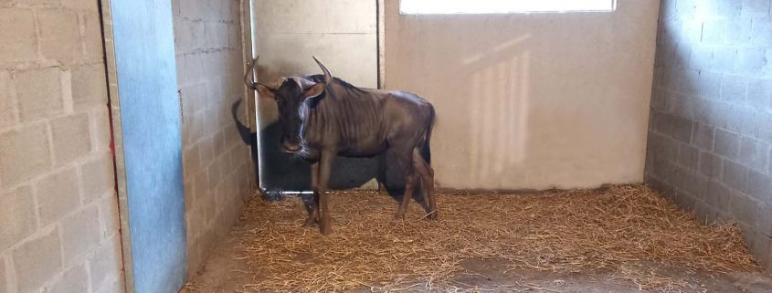 Onze gnoe was ‘alleen’ komen te staan nadat zijn maatje overleden was. Natuurlijk was hij niet echt helemaal alleen want hij had nog gezelschap van de waterbokken, impala’s, zebra’s en elandantilopen. Maar toch hoort een kuddedier niet alleen te staan.