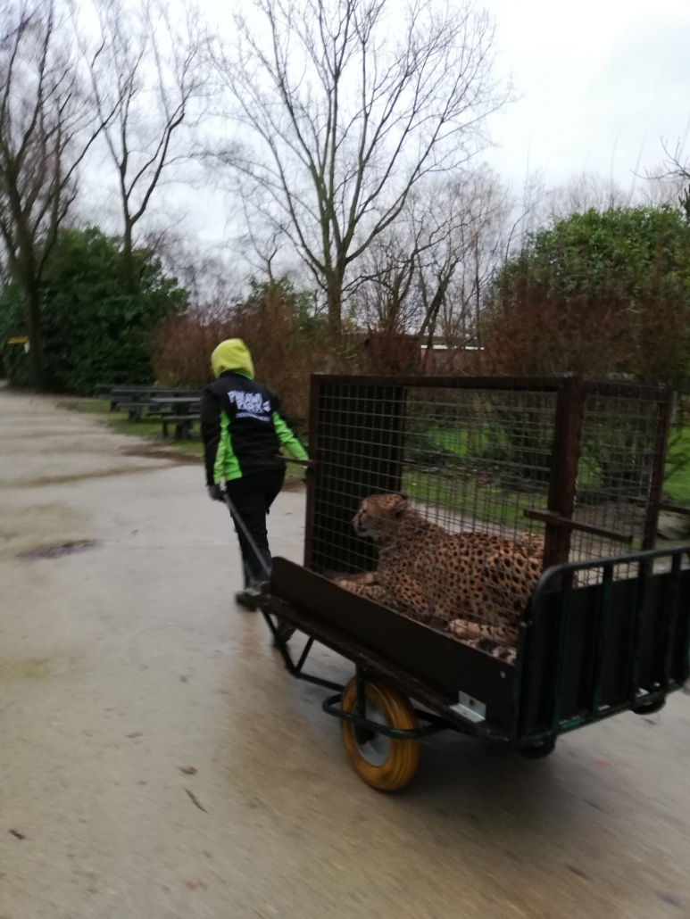 Alhoewel ze theoretisch deze snelheid kunnen halen zat cheeta Nala toch gelukkig veilig in een transportkist en in een busje tijdens dit transport. Terug naar de plaats van oorsprong.