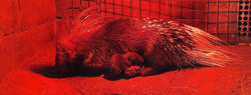 Na de eerste geboorte in oktober vorig jaar is onze groep stekelvarkens goed op weg om een regelmatige voortplanting te hebben. In april was er weer een geboorte in de groep. Het vorige jong was een mannetje en moest het park verlaten want mannetjes krijgen nogal snel ruzie met de papa.