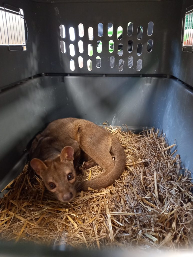 Woensdag zette Pakawi Park een volgende belangrijke stap in het kweekprogramma met de verhuizing van Veni en Vici naar Monde Sauvage, een dierenpark in het Waalse Aywaille. “Daarmee versterken we de positie van de fossa’s in België”, vertelt Van der Velden. “De fossajongen verblijven nu bijna twee jaar bij ons, maar hun moeder gaf stilaan het signaal dat ze het nest moeten verlaten. De andere twee jongen verhuizen binnenkort naar dierenparken in Zwitserland en Duitsland.”