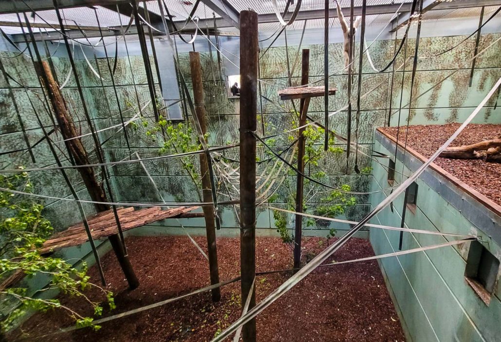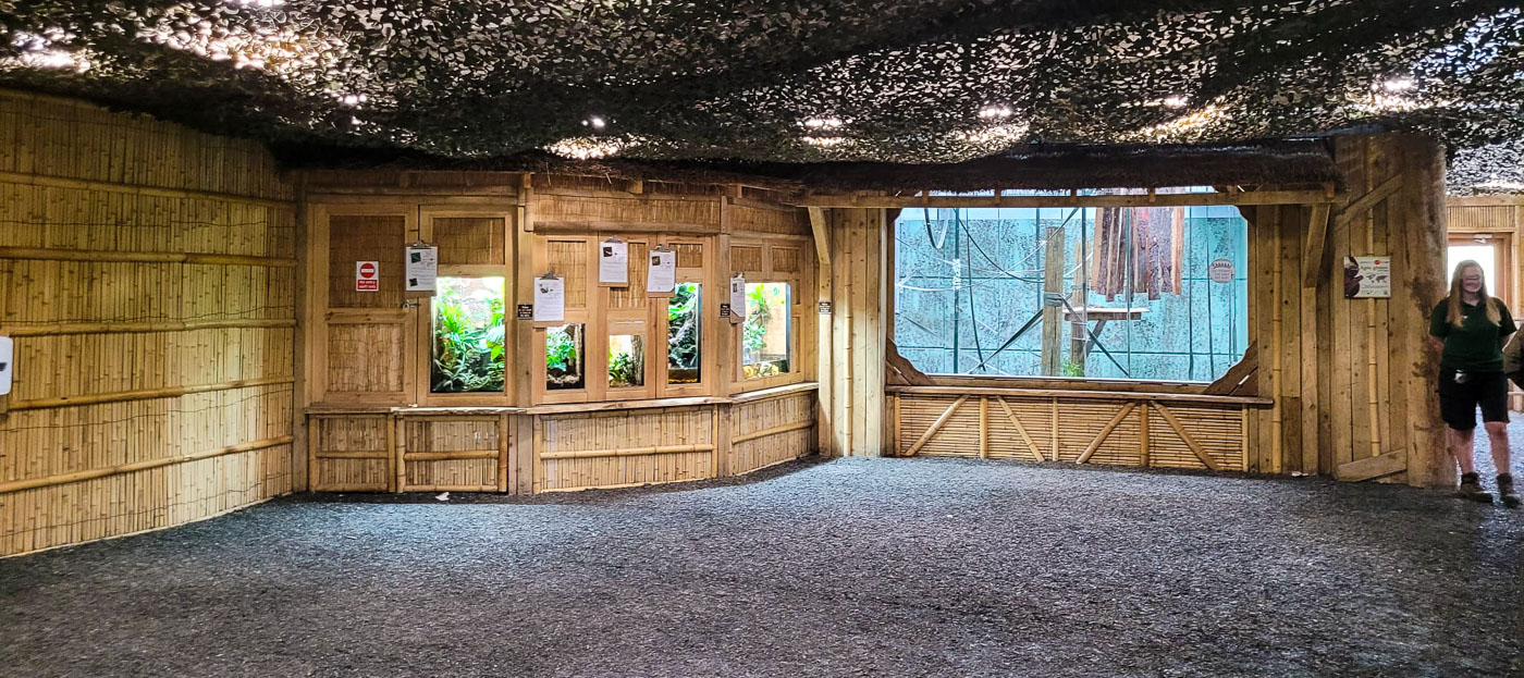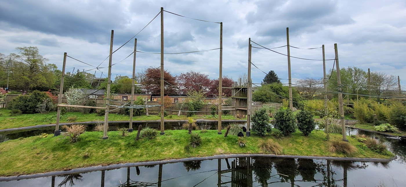 Het verblijf in Twycross Zoo, genaamd ‘Gibbon Forest’, is 7,5 m hoog en heeft een biobodem van 1,5 m diep. Belangrijk is dat niet alleen successen worden gedeeld, maar ook ‘foutjes’. Zo is hun vangkooi op hoogte niet zo handig en de drainage van de biobodem wat zwak. Maar het traliewerkdak waar verzorgers overheen kunnen lopen om verrijking aan te brengen, is een groot succes. Blijkbaar kunnen ze ook van Pakawi Park nog wat leren, want hun systeem van een beweegbare brug voor verzorgers om het eiland te bereiken is wat omslachtig en tijdrovend. Onze vaste brug onder water, waar de verzorgers met laarzen aan doorheen waden, nemen zij mee als idee voor de toekomst.