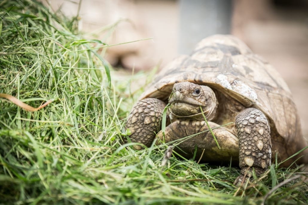 De landschildpadden die wél een winterslaap houden, zaten vroeger ook in de tropenhal maar zijn recent verhuisd naar het verblijf waar voorheen de agouti’s zaten. Het gaat hier over de bekende Griekse landschildpad en de Russische vierteen.  Daar kunnen zij rechtstreeks genieten van de UV stralen van de zon, want die hebben alle schildpadden heel hard nodig om geen rachitis te krijgen en om überhaupt goed te kunnen groeien. De schildpadden die binnengehouden worden moeten daarom voorzien worden van speciale UV-B lampen die zonlicht nabootsen.