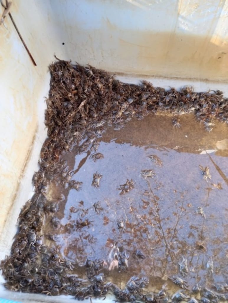 Gevangen wolhandkrabben worden dierenvoeder