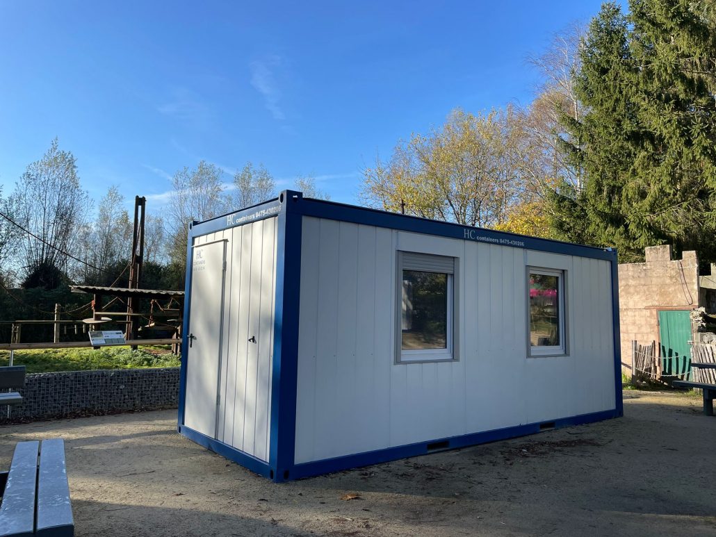 De containers zijn kant-en-klare units met deuren, ramen, isolatie, binnenafwerking en verwarming. Deze moeten natuurlijk wel nog wat aangepast worden voor gebruik voor dieren door er binnenhekwerk in te plaatsen en dergelijke meer.