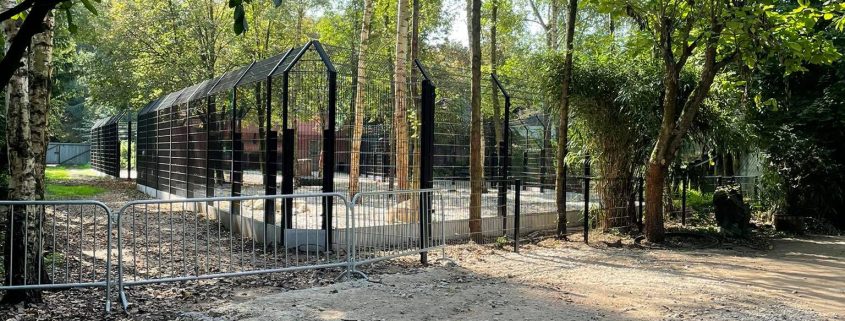 De omheining vervangen bij de leeuwen is niet zomaar een klein projectje. De firma plaatste eerst de nieuwe omheining rond de bestaande omheining en pas daarna werd de oude omheining afgebroken. Op deze manier is niet enkel de omheining beter, steviger en veiliger, het verblijf is ook een pak groter geworden. Het ging van zo’n 300 m2 naar 750 m2. Daarnaast reikt het verblijf nu tot aan een pad waar het eerst niet te zien was. Hierdoor heeft dit verblijf nu twee zichtpunten in plaats van één. Maar hiermee houden de verbeteringen niet op!