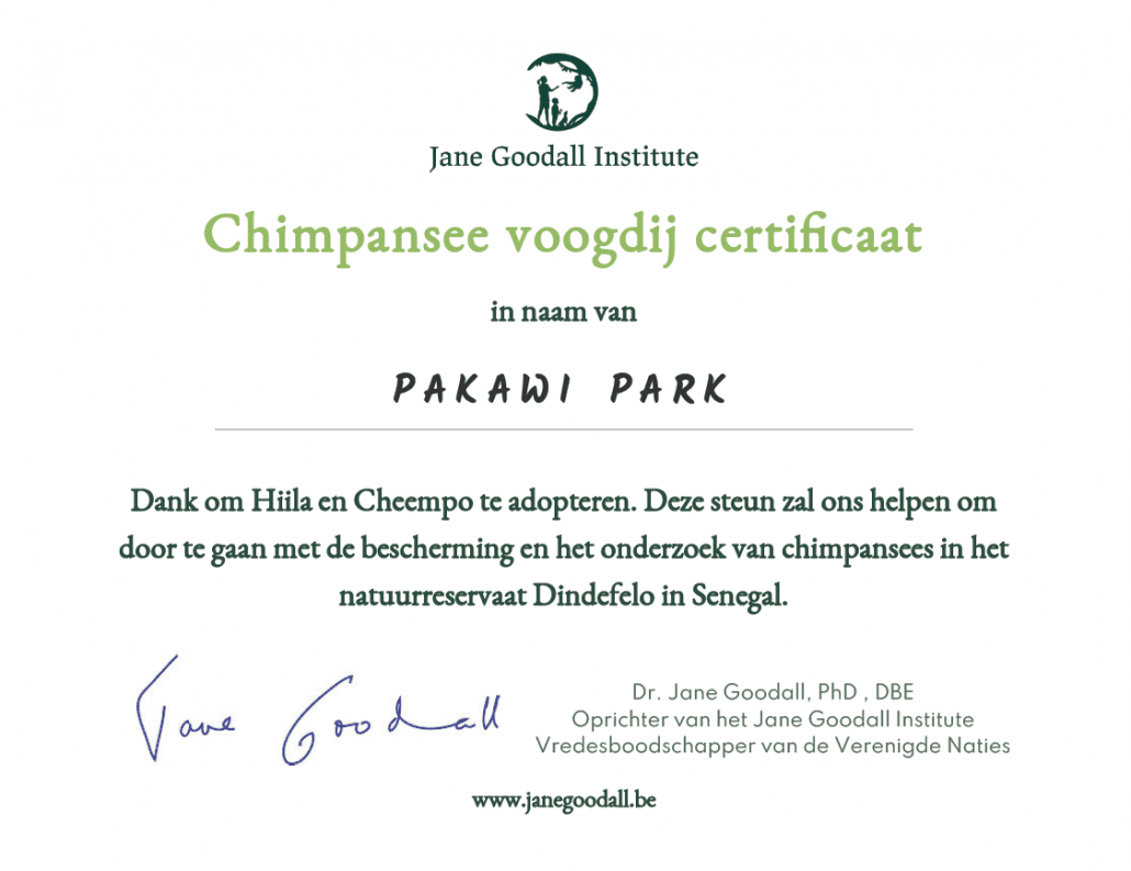 Het eerste jaar hebben we de opbrengsten van de shop gedoneerd en het tweede jaar hebben we symbolisch 2 wilde chimpansee’s geadopteerd. Dit jaar gaan we weer een stapje verder.Mensen met een hart voor dieren moeten met elkaar samenwerken. Wij als dierenpark willen ook dat de dieren in het wild beter beschermd worden en omgekeerd wil ook JGIBelgium dat hun ‘ambassadeurs’ in dierenparken de beste verzorging krijgen. Jane Goodall is etholoog en milieudeskundige en begrijpt zeer goed dat de chimps die in dierentuinen leven evengoed recht hebben op een zo goed mogelijk leven, net zoals hun wilde soortgenoten. Wat is er mooier dan twee verschillende organisaties met een verschillende insteek die elkaar vinden in een gemeenschappelijk doel.
