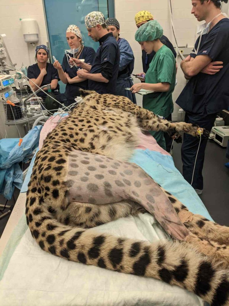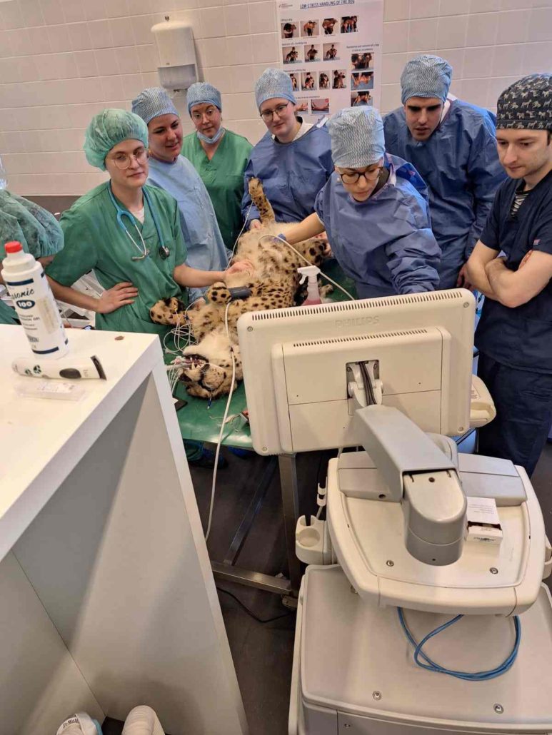 Voor deze operatie deden we een beroep op de Universiteit van Gent. Waar onze nieuwe dierenarts Robby van Leeuwenberg ook gedeeltelijk werkzaam is. Deze gecompliceerde operatie werd uitgevoerd door een team van maar liefst 8 mensen waaronder 3 chirurgen met 2 assistenten én 3 anesthesisten die constant de verdoving gemonitord hebben. Daarnaast is er nog een apart maagonderzoek geweest en hebben we meegewerkt aan wetenschappelijk onderzoek door ook een hartecho en nieronderzoek te laten doen. Onze eigen dierenarts Robby van Leeuwenberg deed daarbovenop nog een vruchtbaarheidsonderzoek. Verzorgers Dieter en Katrien waren er ook bij en verzorgden het transport van het dier. Er zijn dus maar liefst 14 mensen betrokken geweest bij een ingreep die 7 uren in beslag genomen heeft, de rit niet meegerekend.