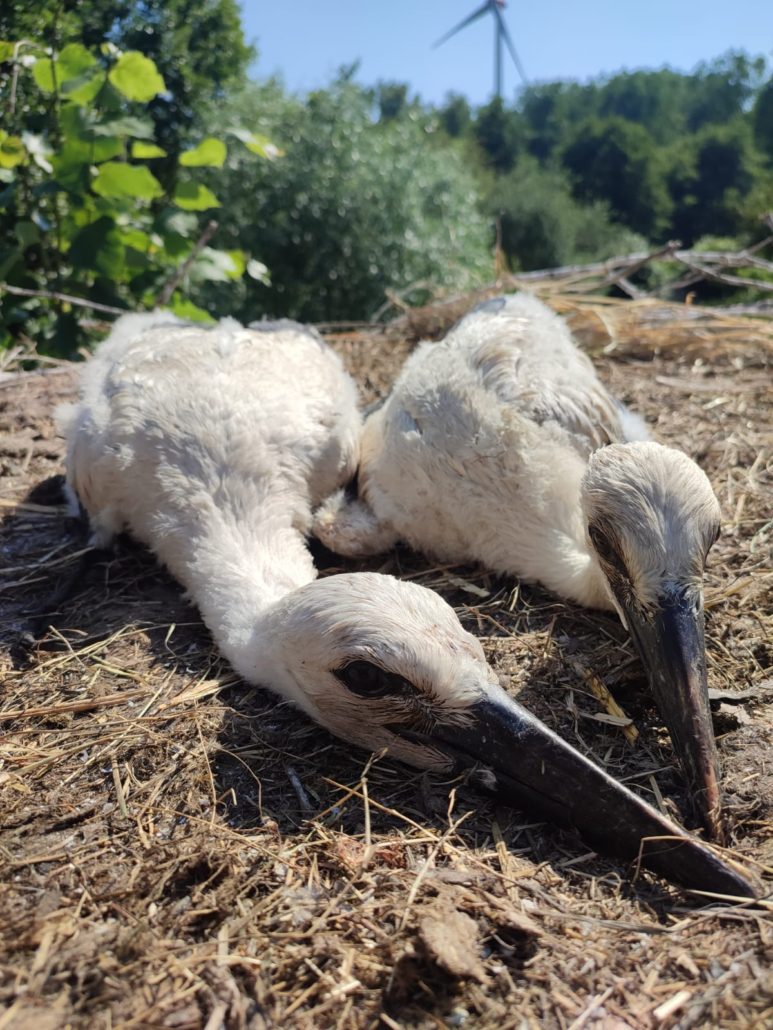 Jonge ooievaars houden zich voor dood (Tonische immobiliteit)