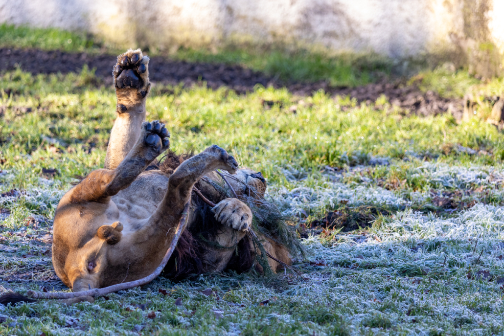 Vele dieren die wij associëren met warme gebieden zoals de leeuwen en de Bengaalse tijgers kunnen eigenlijk best goed tegen de koude. De koude brengt eerder onrechtstreekste uitdagingen. Zo moeten we ervoor zorgen dat sommige dieren niet over het ijs van hun eiland af kunnen lopen zoals de kapucijnapen en de ringstaartmaki’s. Maar zeker ook bij de leeuwen willen we dit vermijden. Bevroren of gladde ondergrond is ook voor de giraffen een uitdaging, zij mogen zeker niet uitglijden met hun lange kwetsbare poten.